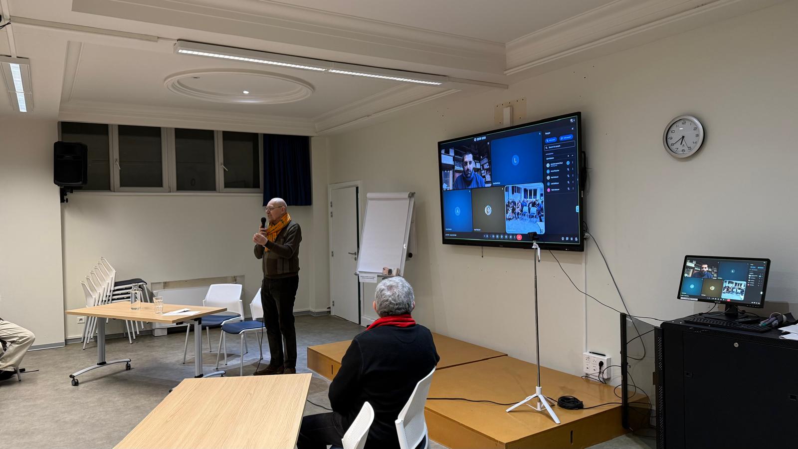 Nous avons pu écouter les témoignages de Jaber Baker, romancier et chercheur syrien, spécialisé dans l’étude de la violence, de l’autoritarisme et des génocides, ancien prisonnier politique dans les geôles syriennes. Il a pu mettre en évidence comment le système carcéral mis en place par Assad père et fils, a broyé la société syrienne et inscrit dans les corps ces dynamiques génocidaires. Depuis Damas, Yahia Hakoum, doctorant en sciences sociales à l’EHESS (Paris), a pu mettre en évidence l’énergie de la société syrienne qui redécouvre le sentiment de liberté, le droit de parler, malgré des tensions qui perdurent entre groupes armés, dont des anciens membres du pouvoir d’Assad.